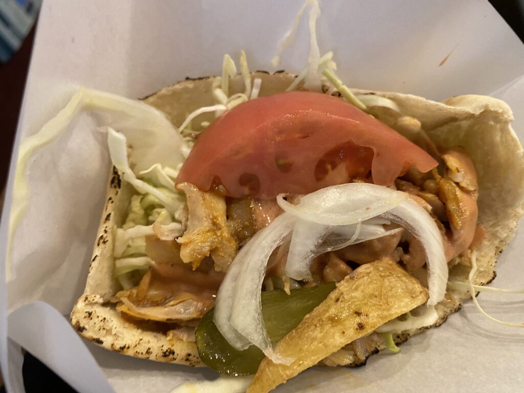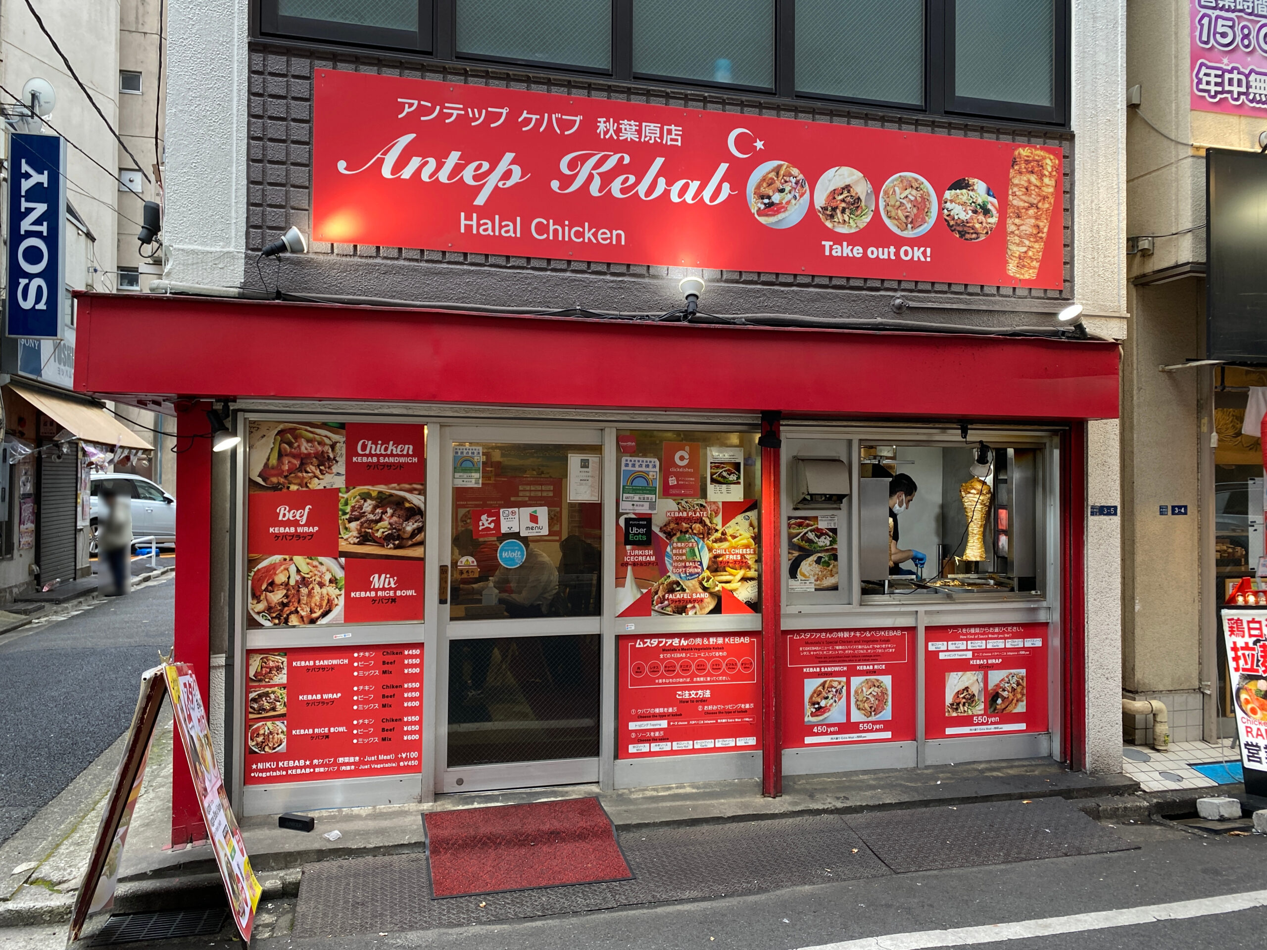秋葉原 Antep Kebab 秋葉原 Antep Kebab 2022.08.232022.03.26 秋葉原のAntep Kebab.フライドポテト,ピクルス,オニオン,トマト,オリーブなどがトッピングされてる具だくさんのケバブサンド.ポテトが2キレ入ってるだけで,めちゃくちゃ嬉しい.激戦区秋葉原にあって,実力十分なケバブ.とても美味いです.店主の高くて優しい声も,癒される. Antep KebabStar Rating ★★★★ MenuケバブサンドMeatChickenSauceMixPrice450yenVisited2022.3.26