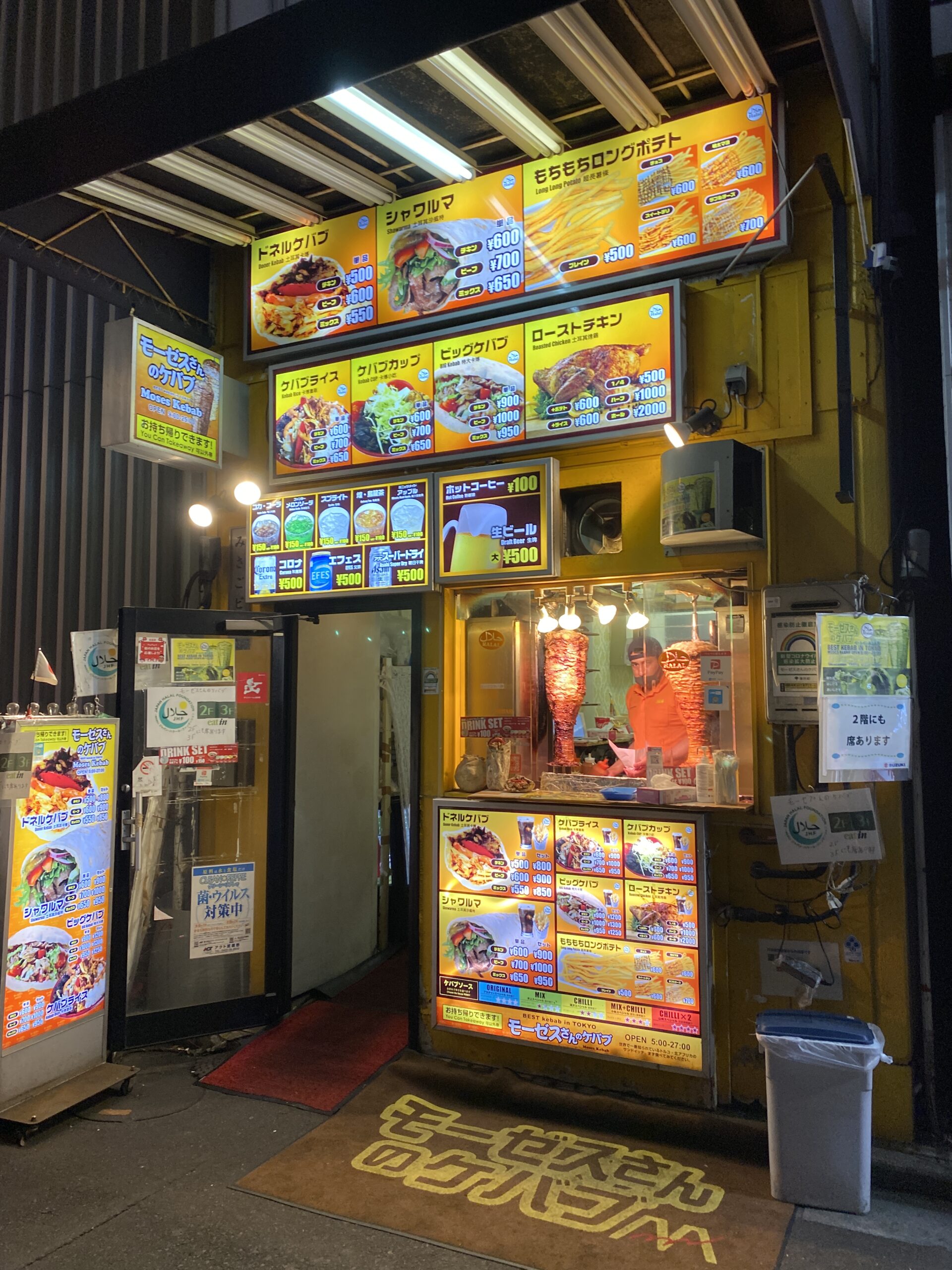 秋葉原 モーゼスさんのケバブ秋葉原駅前店 秋葉原 モーゼスさんのケバブ 秋葉原駅前店 2022.08.302022.05.04 モーゼスさんのケバブ.27時まで営業してるし,2階のイートインスペースは広く,秋葉原といった感じのチラシが壁いっぱいに貼られています.ケバブ屋さんは店舗や店員さんによって多分に味や量や美味さが変わるもんだけど,ここはいつも安定したクオリティで美味いです. モーゼスさんのケバブ秋葉原駅前店Star Rating ★★★ MenuドネルケバブMeatChickenSauceChilliPrice500yenVisited2022.3.5