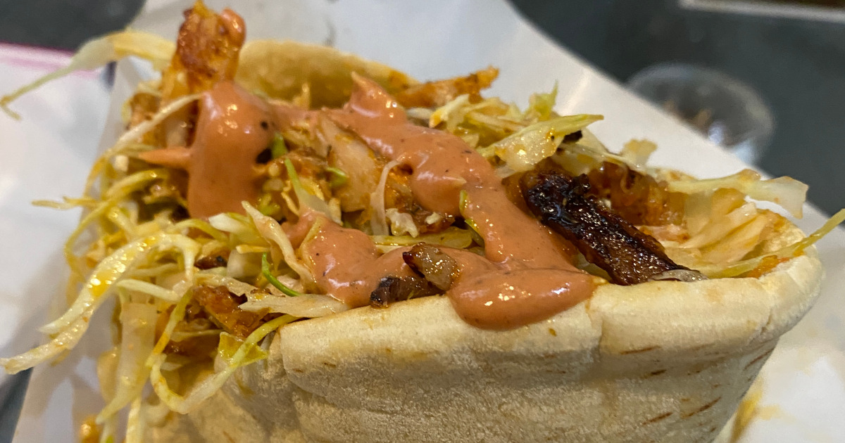 秋葉原のモーゼスさんのケバブ.ここの注目メニューがビッグケバブ.普通のケバブサンドは円形のピタパンを半分に切ったものを使用されてるが,このビッグケバブはピタパン1枚をまるまる使っている.写真では良くわからないかもしれないが,中央に切れ線が残っているのが分かると思います.円形の上側を切って,そこからケバブが詰められています.なかなかクレイジーなケバブです.通常のケバブサンドが500円で,このビッグケバブが900円.中身は体感では2倍以上になっているような気もしますが,気のせいかもしれませんw ケバブは圧倒的なボリュームで食べるのが美味いので,至福を味わえるケバブです.