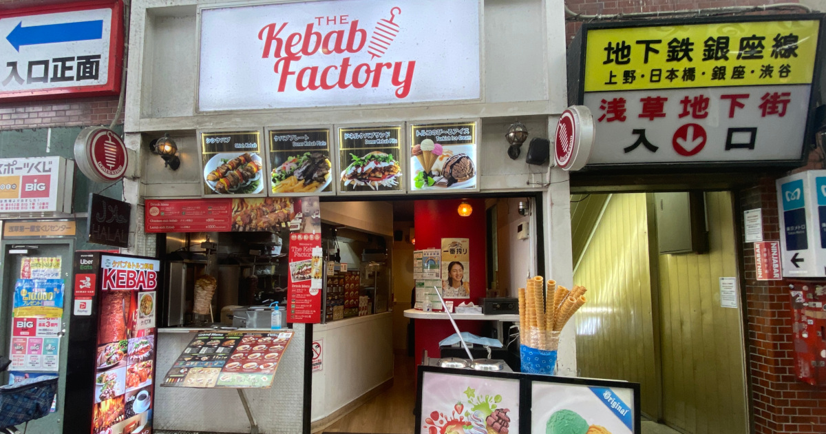 浅草のThe Kebab Factory.仲見世と直角に交わる新仲見世というアーケード商店街の入り口にあるトルコ料理屋さんです.店頭では,ドンドゥルマの販売もしてます.