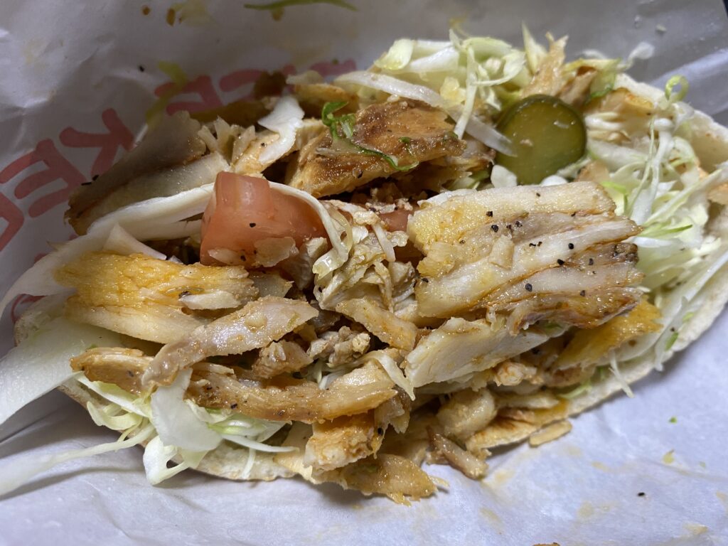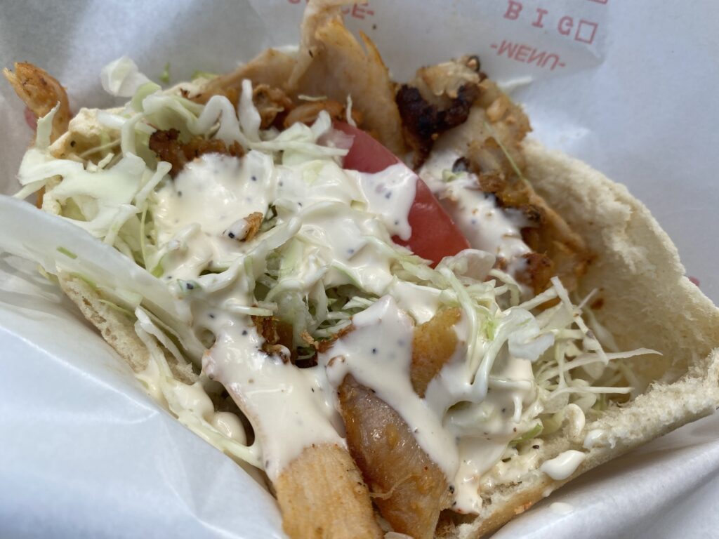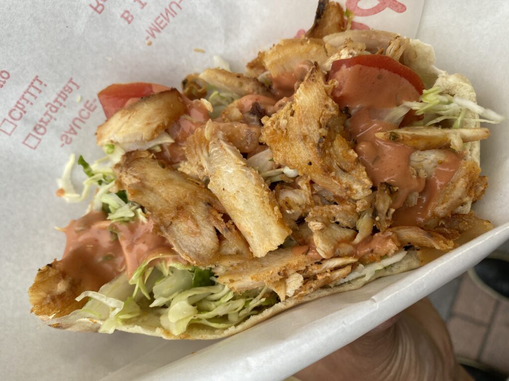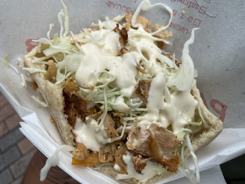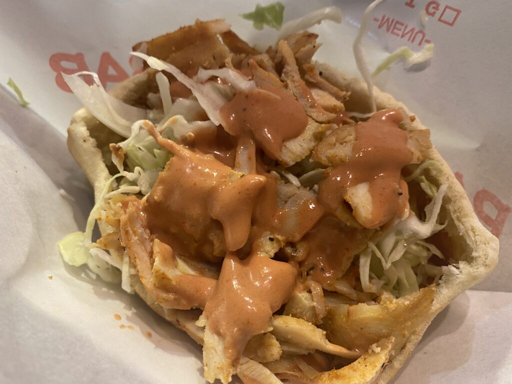 チキンの味付け,ソースの相性,ピタパンの塩加減のマッチングが最高.それでいて,ボリュームもしっかりある.チキンとビーフがあるが,私のおすすめはチキン.ソースは,オリジナル・チリ・マヨ・ガーリック・塩コショウの5種類.オリジナルはバランスのとれた深い味わい.チリはピリ辛といった感じで,私にはちょうど良い辛さ.マヨはスパイスが苦手な人かマヨラーにおすすめ.ガーリックは,これにタバスコを追加してもらうと最高に美味いです.