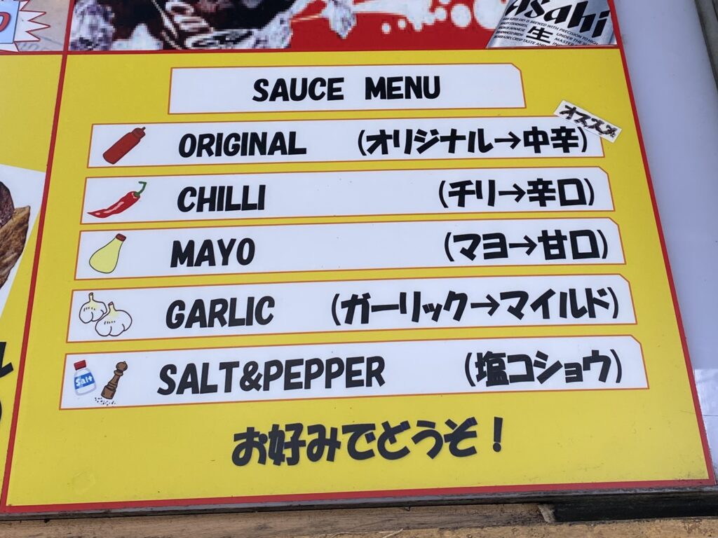 そして,ここで一度は試してもらいたいのが塩コショウ.肉そのものの味を味わえます.素材に自信がないと出来ないメニューですね.また,ケバブサンドの栄養素を考えた時,ケバブサンドのソースが一番の問題.このソースを塩コショウにすることで,完璧な栄養食になる!