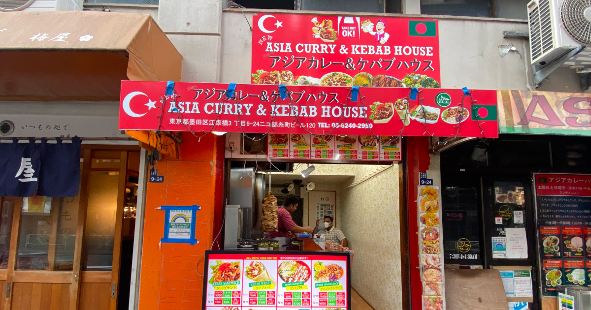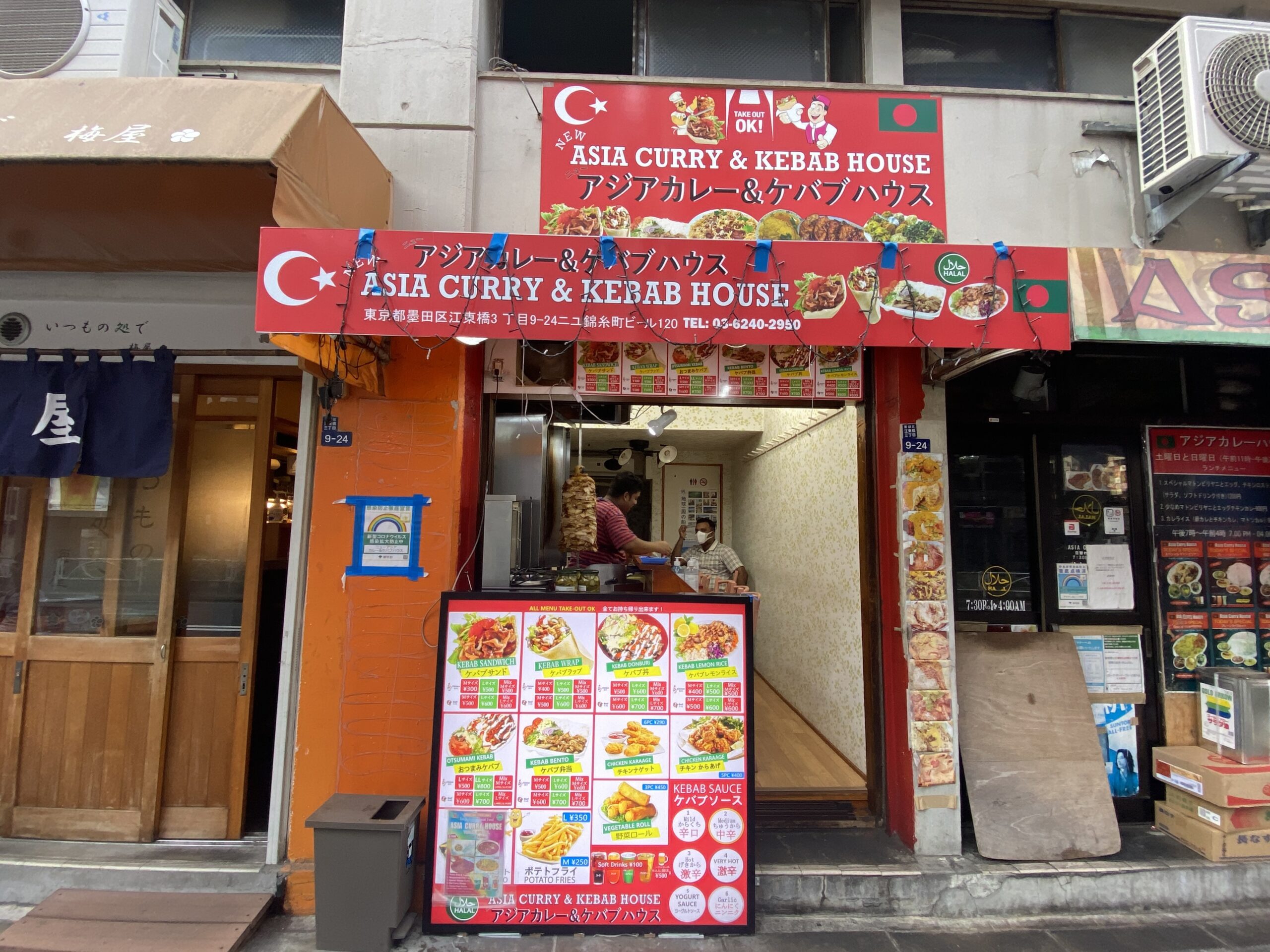 錦糸町の丸井の裏.ASIA CURRY & KEBAB HOUSE.2軒隣にはSmile Kebab Shopがある.どちらも,300円ケバブだ.看板にはトルコとバングラデシュの国旗が描かれているので,トルコのケバブとバングラデシュのカレーのお店ということだろうか.