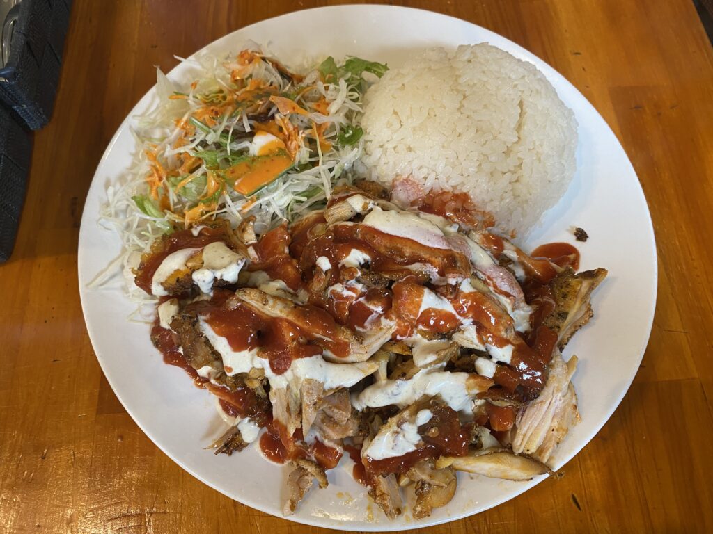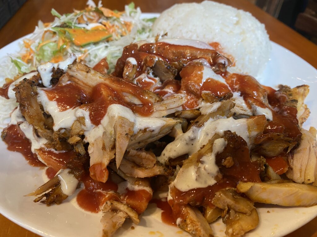 初訪問だったので,店内で食べてみることに.狭い店内かと思ったが,二階席まである.メニューをみると,ケバブサンドはなくてプレート料理のみだったので,ヒマラヤケバブプレートを頼むことに.すると,このボリューム!!!肉量は普通のケバブサンドの3倍はあるんじゃないかってくらい.チキンの切り方は分厚くて大きくて,ジューシーで美味い.ライスもしっかり量があり,なかなか食べきるの大変です.
