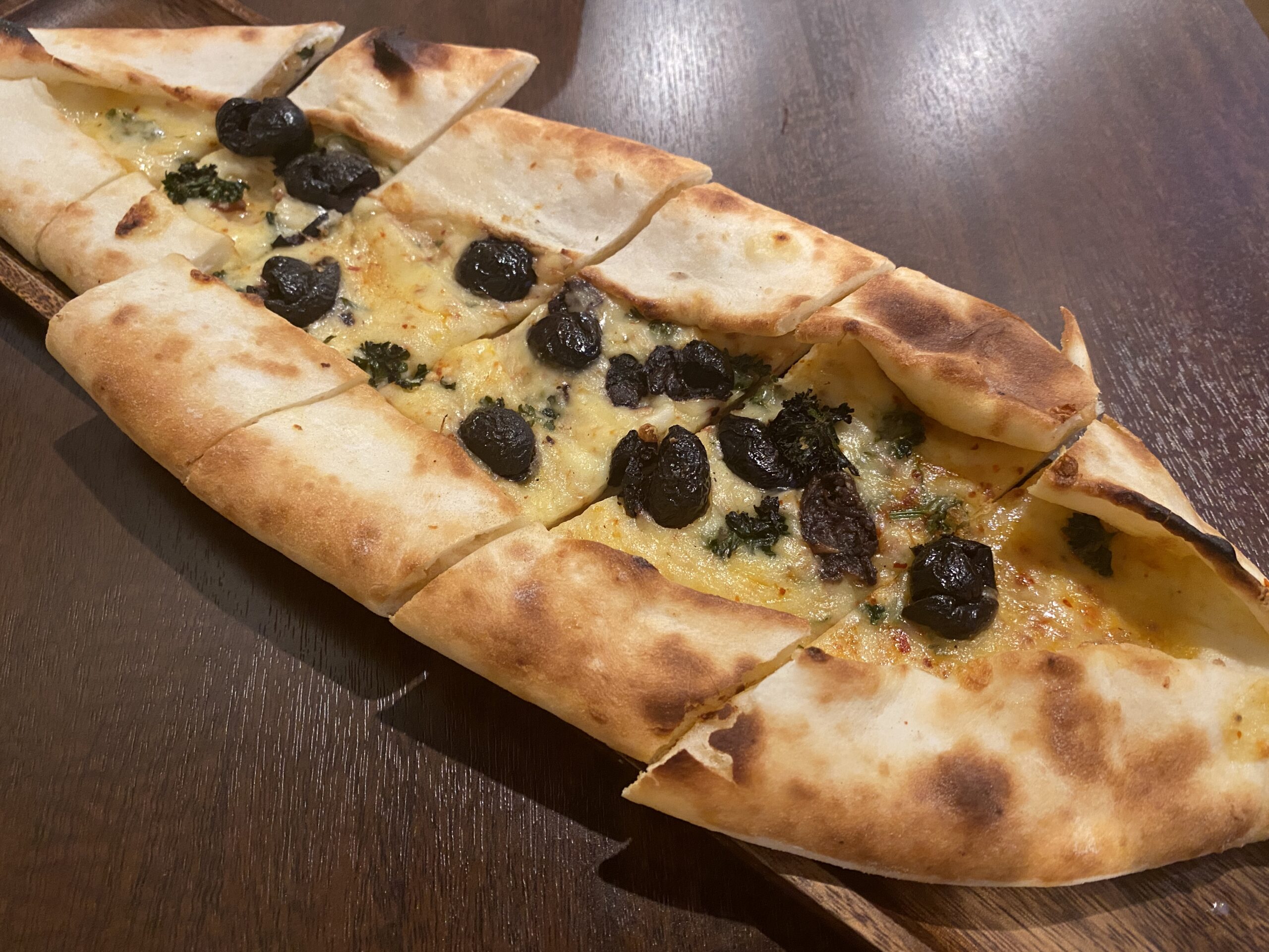 前回,レベルの高さに驚いたHappy KEBABだが,丼にしても美味い.ここは近くを通ったら,必ず寄るようにしたいお店.ケバブ以外にもトルコ料理が豊富.オリーブ&チーズピザ(1500円)を頼んだはずなんだが,これはオリーブじゃない...でかいレーズンみたいなのが乗ってた...んー,これはちょっと外したなって感じw