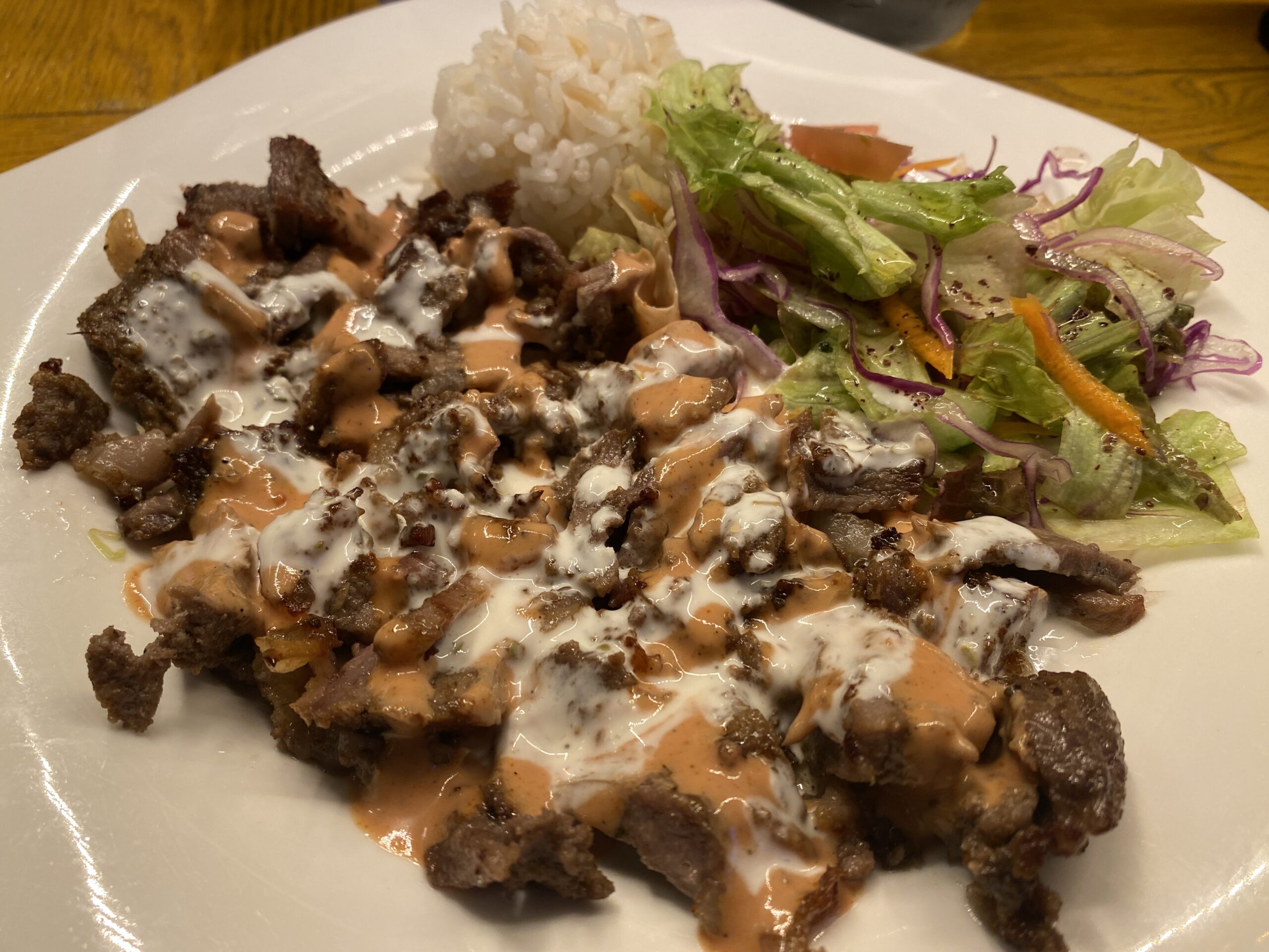 浅草橋駅のガード下にあるサライケバブ.夜中に訪れたのでチキンが売り切れとなっており,ビーフで.コクのあるビーフのケバブと,少量のピラフが,一日の〆には,丁度良い.