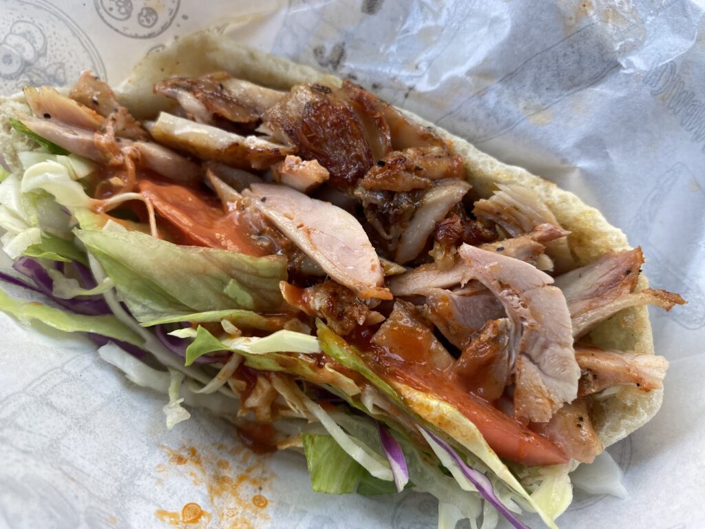 ここのケバブは,店員さんが物凄く丁寧に作ってくれます.盛り方も美しくなるようすごく気を使っていました.写真は一度封を閉じた後だからちょっとぐちゃってますが,本当にきれいな盛り付け.ソースはオリジナルがおすすめということでお願いしたら,なんともオシャレな味付け.トマトも多目で,なかなか良いケバブです.