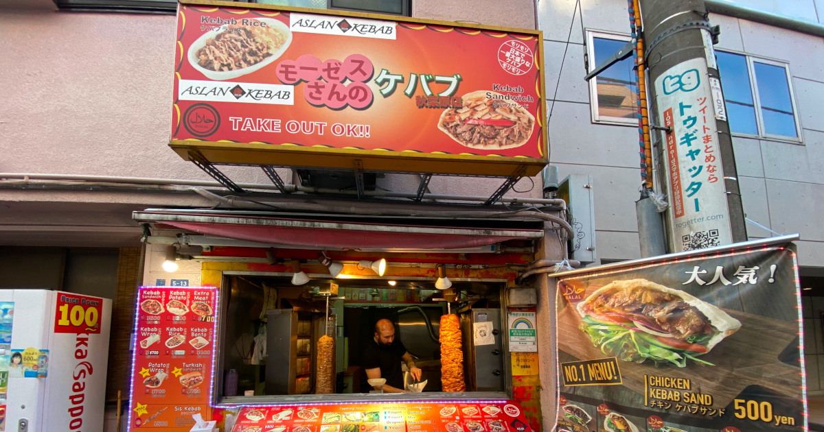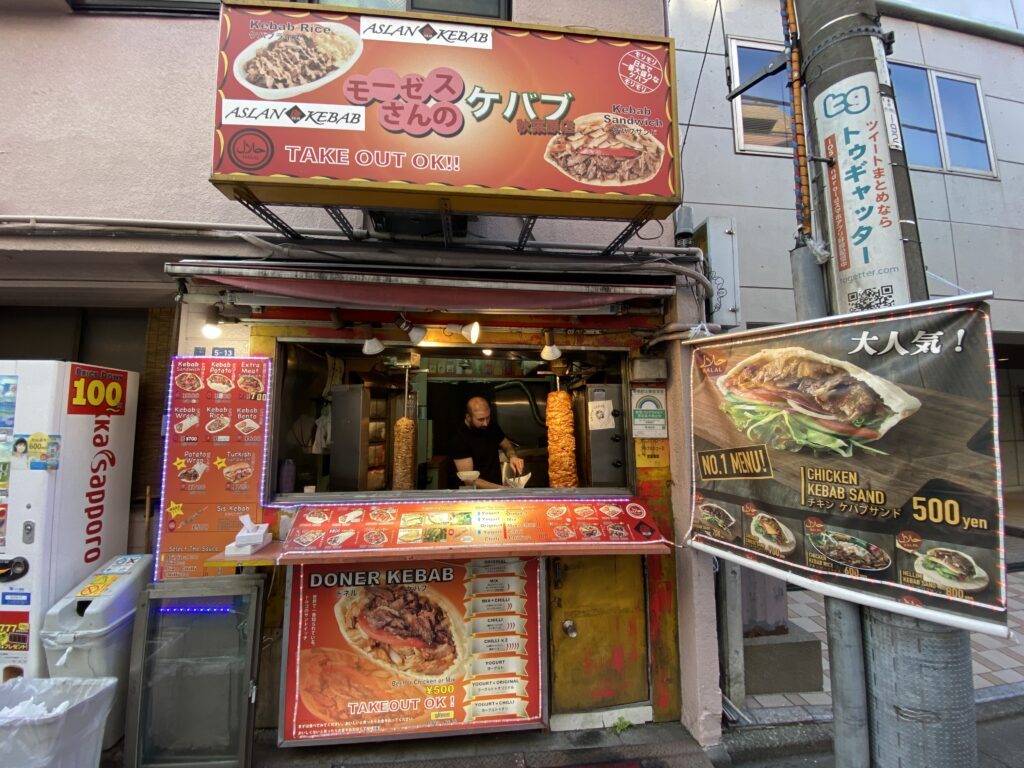 秋葉原のジャンク通りにあるモーゼスさんのケバブ秋葉原店.店名が,モーゼスさんなのかASLAN KABEBなのか,はっきりしない.ケバブバッグはASLAN KEBABだった.