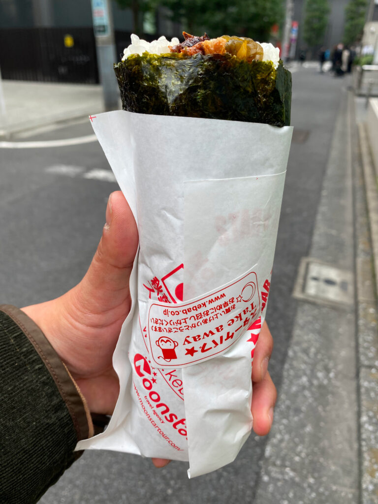 STAR KEBABのケバブのり巻きも,これまた物凄い米の量!特徴的なのは,きゅうりのキューちゃん的な漬物が入っていること.これは意外!ケバブに合ってるんです.本当に美味い.まだケバブのり巻き未体験の人は,一度試してもらいたい.それくらい,ケバブのり巻きの可能性を感じてます.